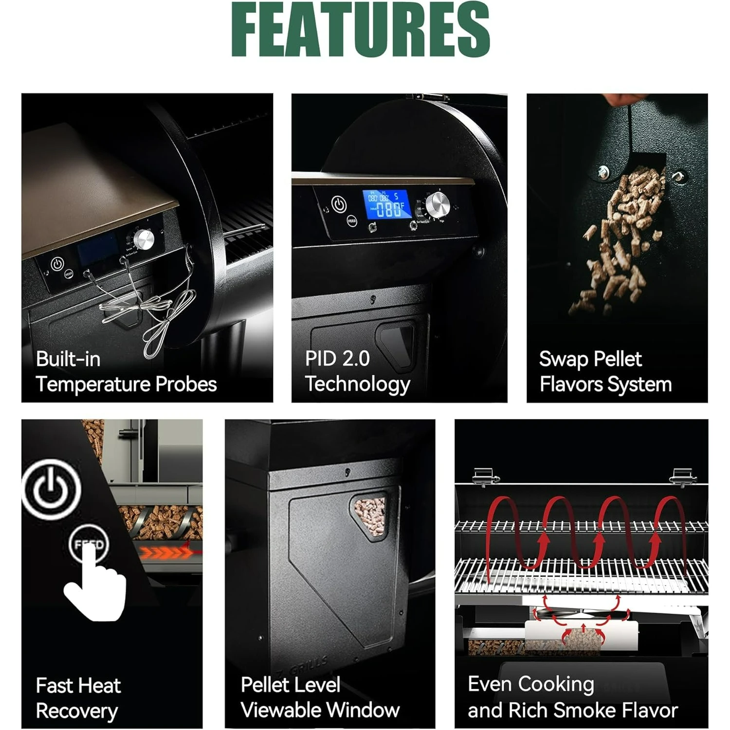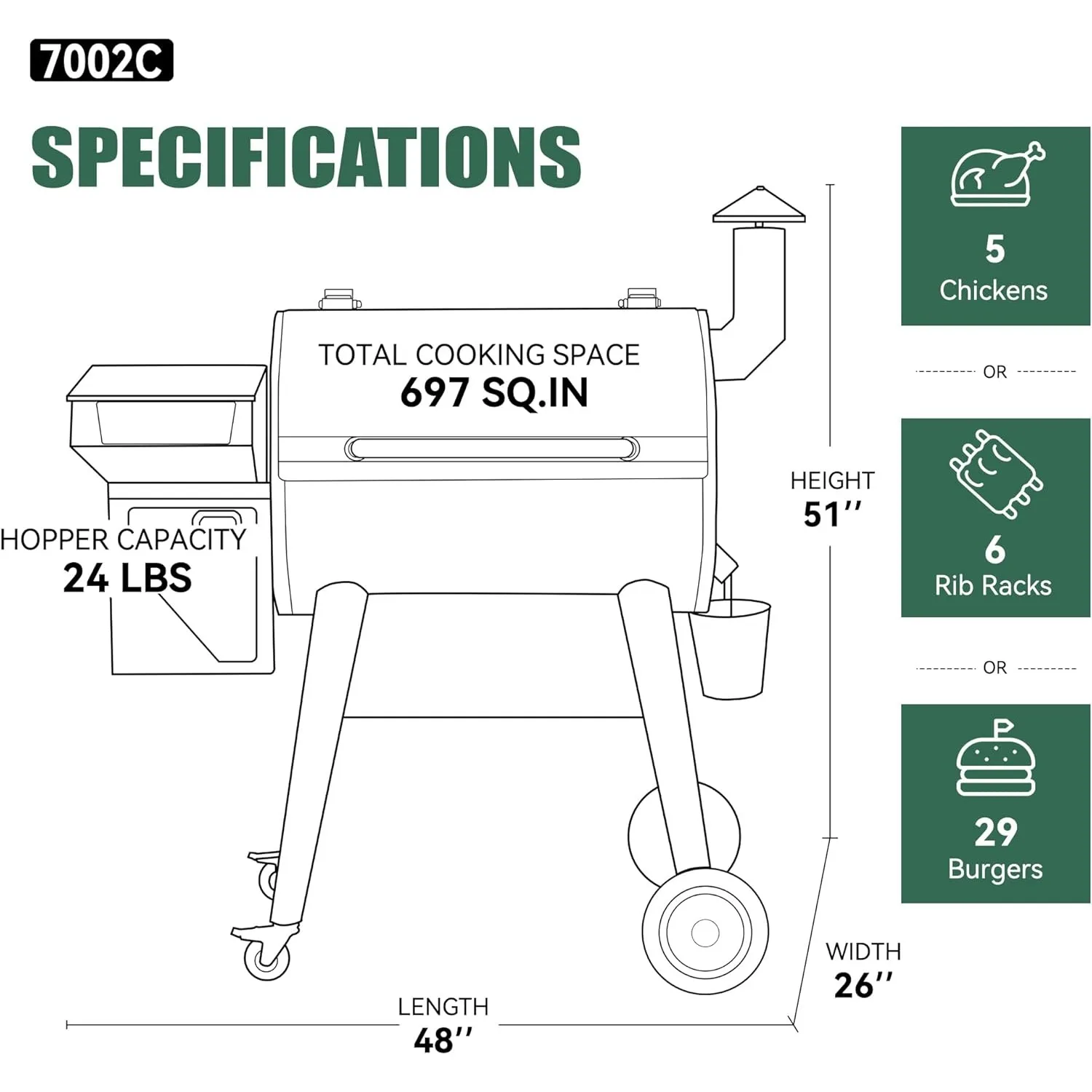 HUGE CAPACITY – 700 sq in grilling space is great for Home, party, and tailgating; 24 lbs large-capacity pellet hopper offers a longer cooking time
